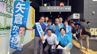 | 8 | 火 | 選挙運動を行いました。 春日部駅東口、駅頭に矢倉候補と立ちました。 ![]() 幕前挨拶を行いました。 市民相談を受けてました。 |